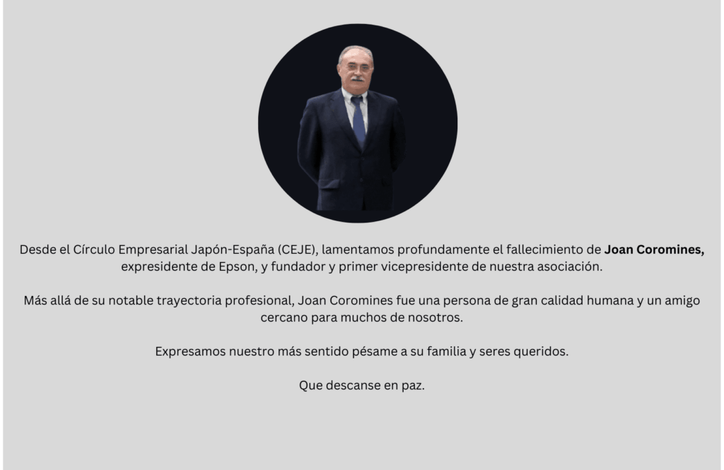 Desde el Círculo Empresarial Japón-España (CEJE), lamentamos profundamente el fallecimiento de Joan Coromines