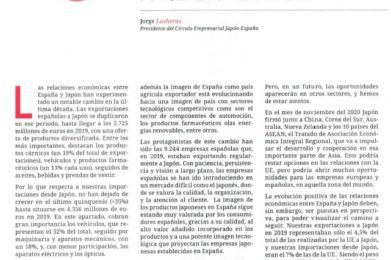 Expansión publica una noticia sobre el récord de inversión japonesa en Cataluña durante 2020. En esta pieza, se recogen las conclusiones del Presidente del Círculo Empresarial Japón España, Jorge Lasheras, quien asegura que “Cataluña es la tradicional puerta de entrada de Japón a España y hay muchos casos de éxito”, además, niega la fuga de […]