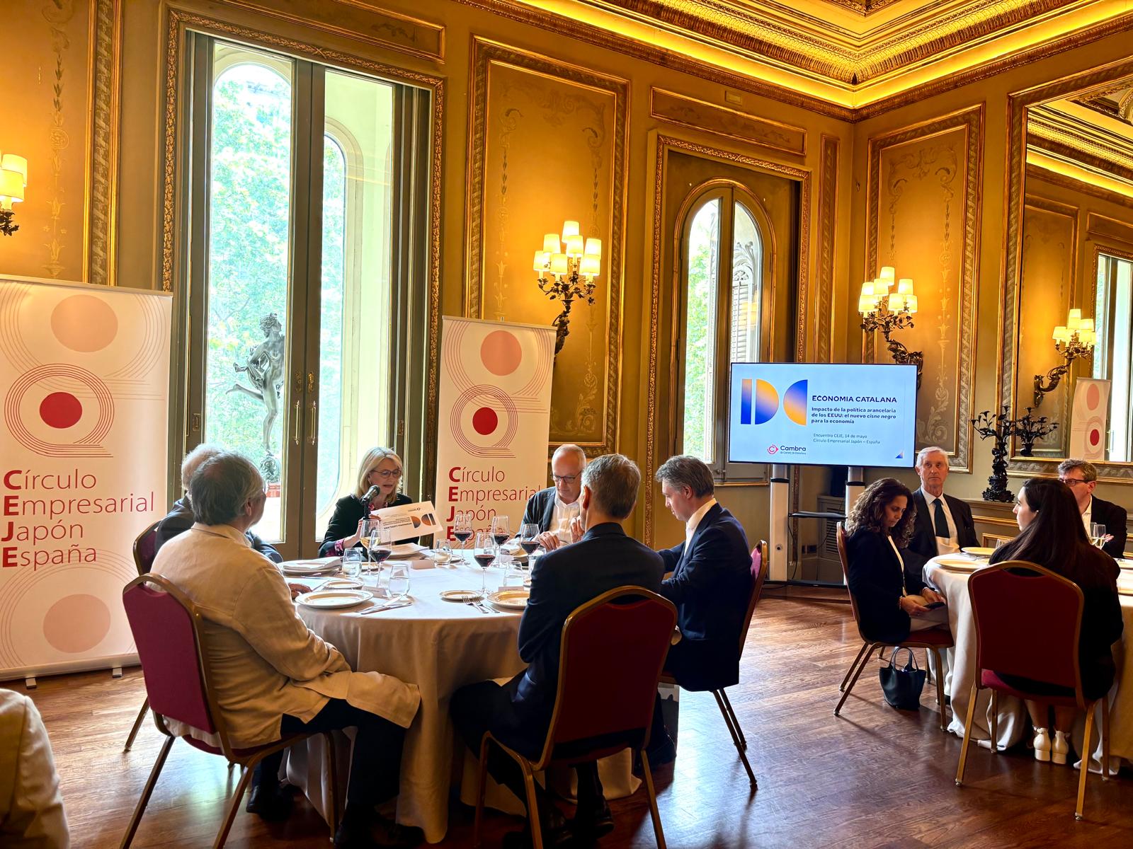 En esta comida celebrada el miércoles 14 de mayo en el Círculo Ecuestre, los socios han tenido la oportunidad de conocer y conversar con la directora de análisis económico de la Cambra de Comerç de Barcelona, Carme Poveda, quien compartió su visión sobre la coyuntura económica actual y los retos que plantea la política arancelaria de los Estados Unidos.