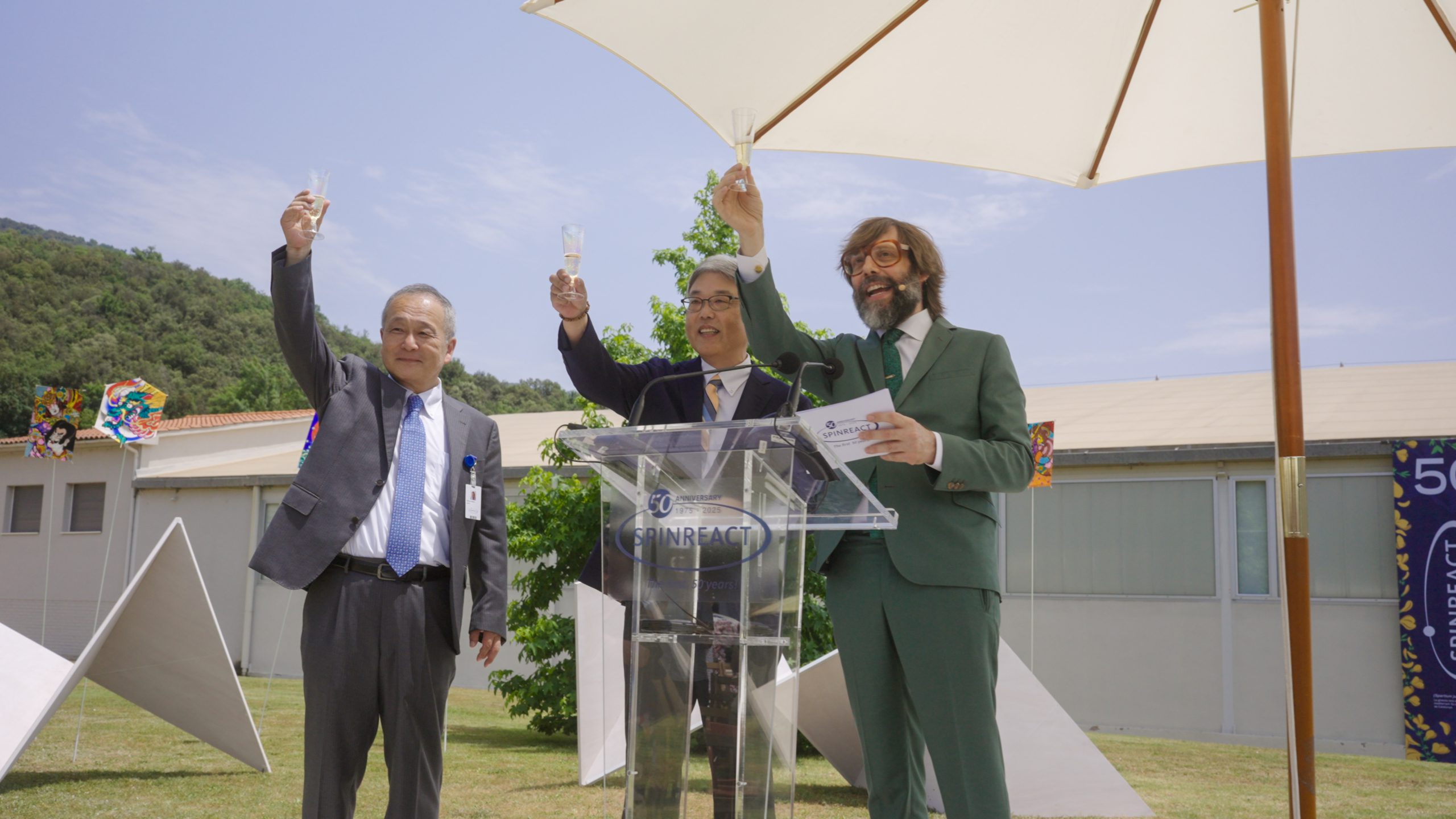 Our partner Spinreact, a company with Japanese capital and a benchmark in the in vitro diagnostics sector, has commemorated its 50th anniversary with a big party at its facilities. In addition to the team and their families, the celebration brought together retirees, suppliers, neighbours of Sant Esteve d’en Bas, as well as local and international personalities.